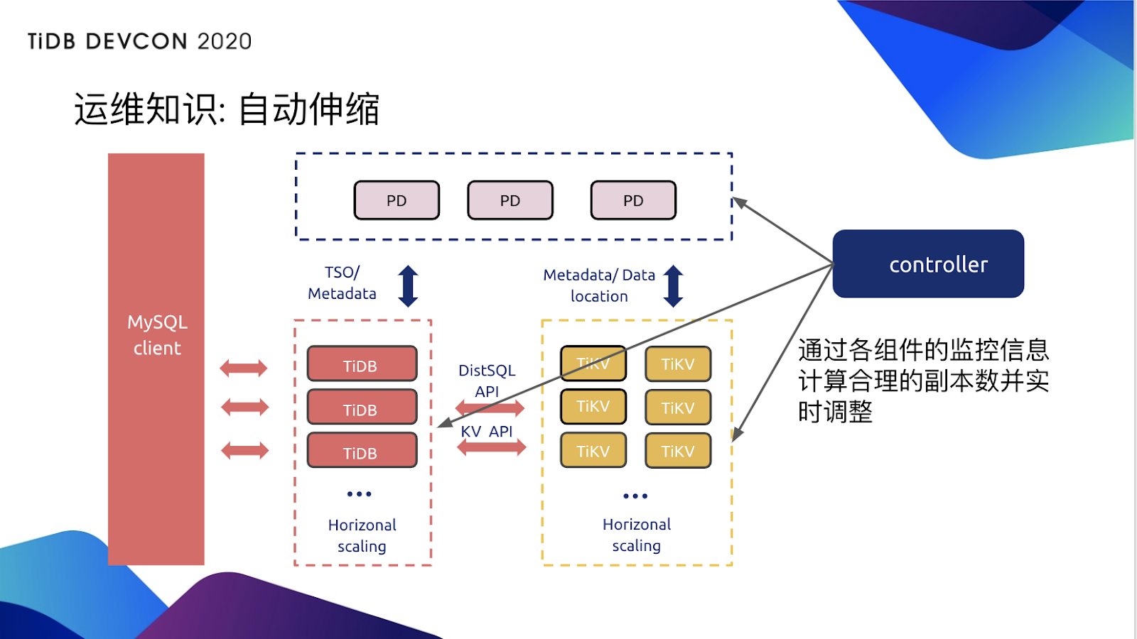 TiDB 能够很好的借助 K8s 环境做水平伸缩;
