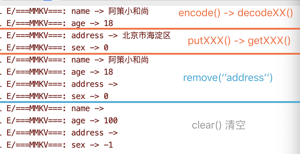 - 可以通过 encode() 方式存储数据也可以使用和 SharedPreferences 相同的 put() 方式存储数据;
