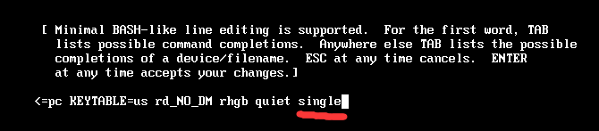 虚拟机和物理机是有区别的,如果在物理机上,quiet后加single无法进入,将上图的single替换为数字1,才成功进入。single和1换着试,总有一个是对的。