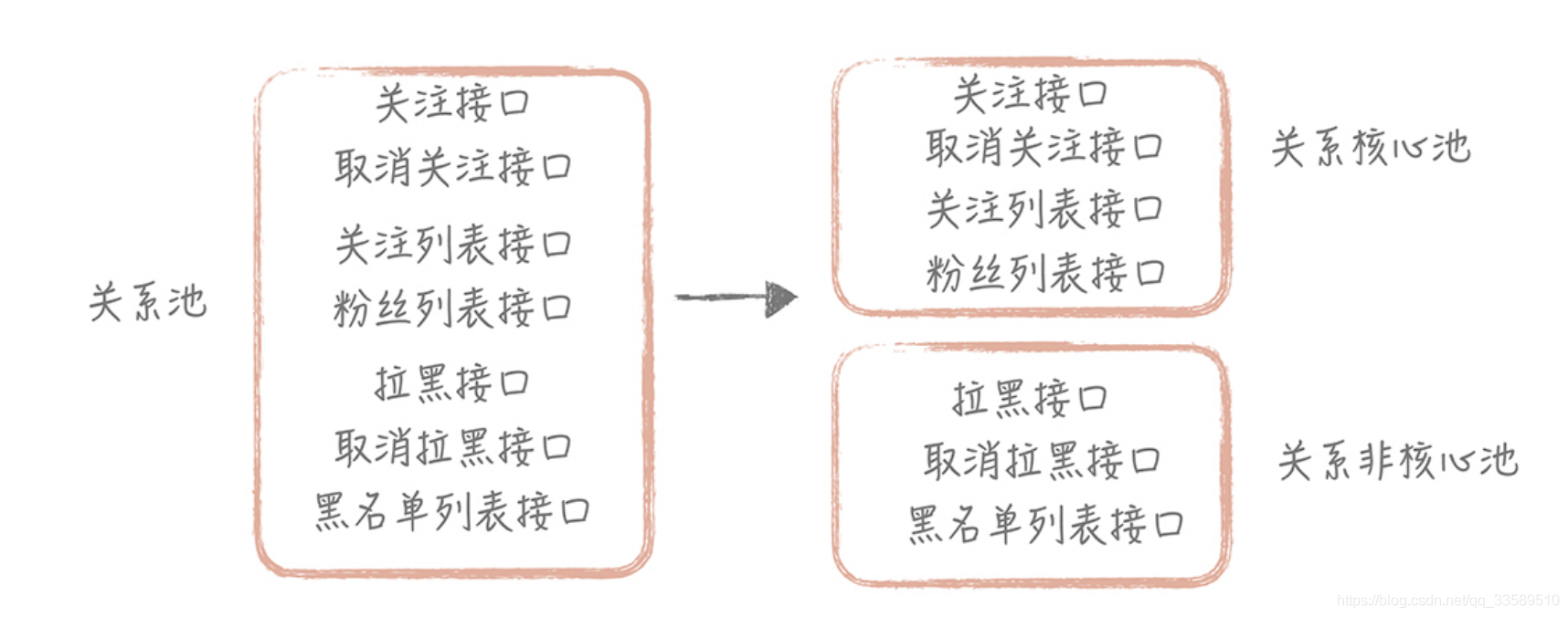 还可根据业务接口重要程度,把业务分为核心池和非核心池。比如关系池: