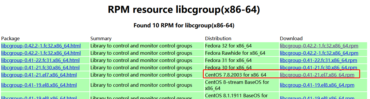 搜索“libcgroup rpm” 。 RedHat系统就选择centos的安装包,下载