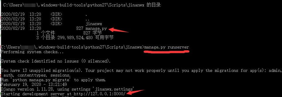 先进入\python27\Scripts目录,建立项目jinanwx(名称随便起)