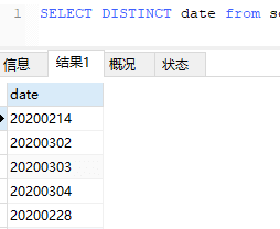 sql = "select DISTINCT date from testtable"