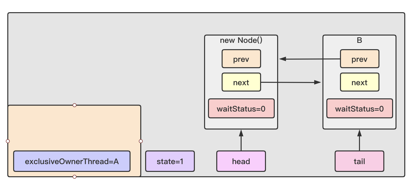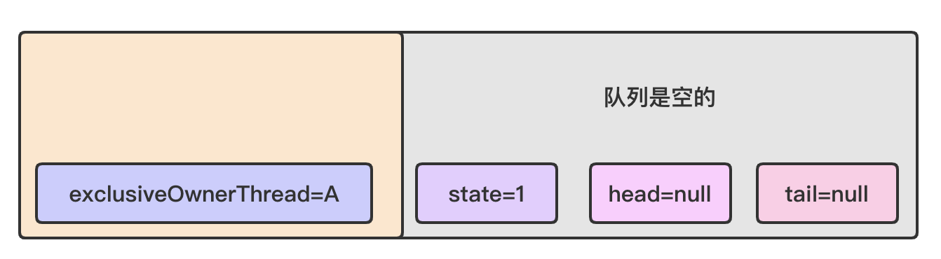 不管是公平锁还是非公平锁,线程A此时就可以获取到锁并返回了,此时AQS的内部结构如下: