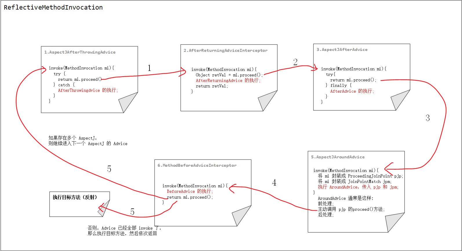 执行顺序:Around “前处理” > Before > Around “后处理” > After > AfterReturning|AfterThrowing,如下(在后续文章会进行分析):
