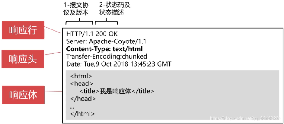 - HTTP响应包含三部分:响应行、响应头、响应体