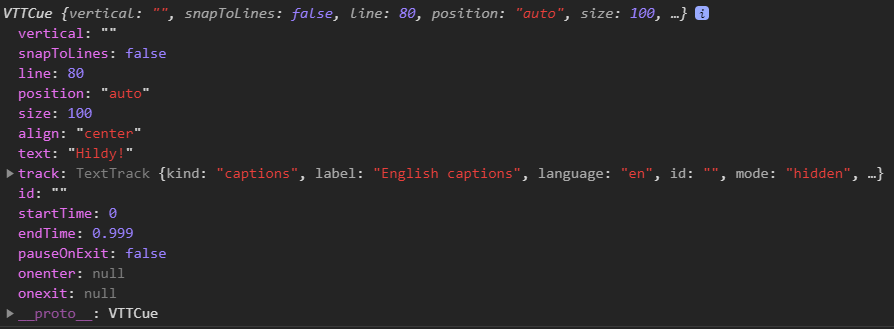 const cue = track.activeCues[0] // cue 代表一条字幕
