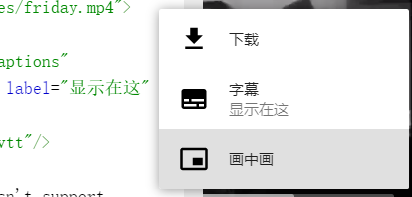 track 元素使用 WebVTT 格式来显示字幕。一个媒体元素的任意两个 track 子元素不能有相同的 kind, srclang, 和 label属性。