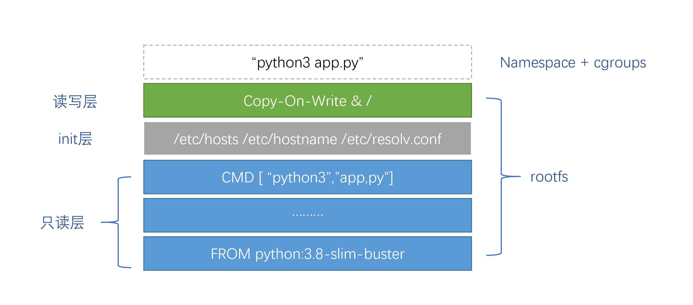 - rootfs,也就是镜像,提供了容器的运行内容。