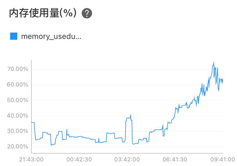所以有时候敬敬风水还是很有必要的,有点扯远了哈,这篇我们来看看程序的内存暴涨如何去排查,为了让你更有兴趣,来一张运维发的内存监控图。
