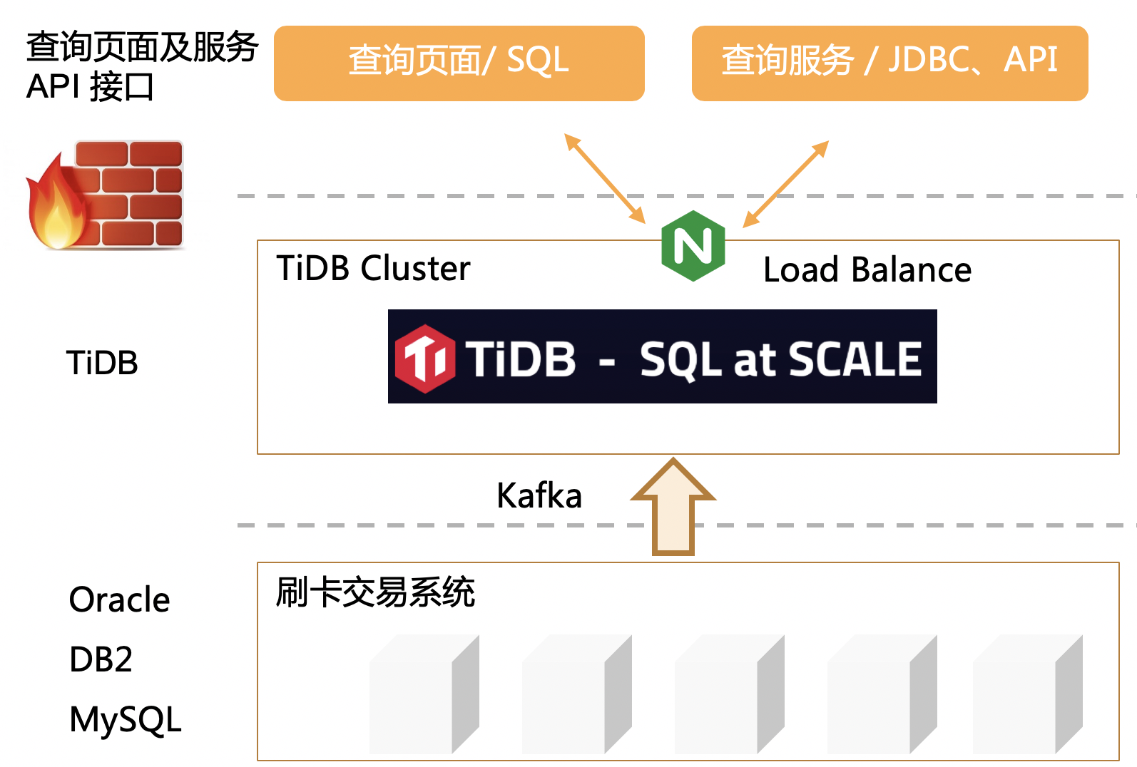 核心系统减负。从 AS400/DB2 核心环境实时数据同步汇聚到 TiDB,包含手机银行交易等过百亿数据规模交易记录,提供实时联机查询。