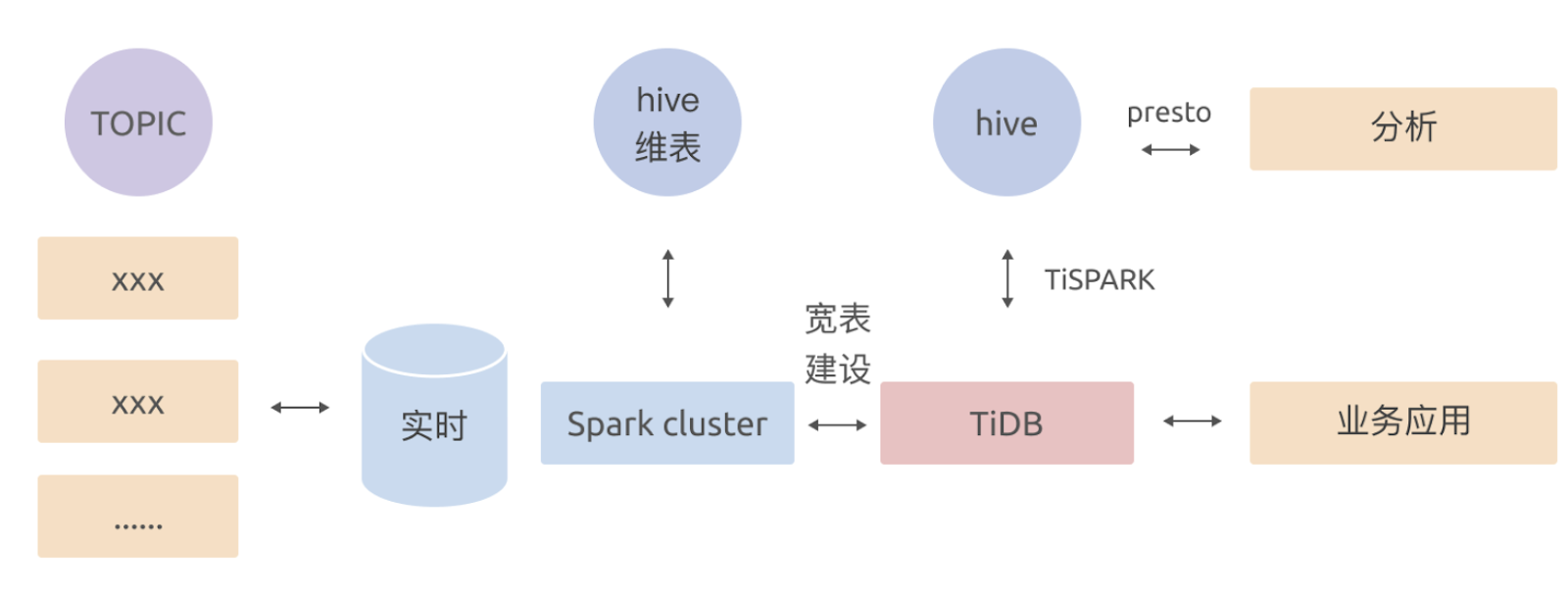 通过将中通的十多个数据消息源进行实时的汇聚:通过 TiDB 之上的 TiSpark 的能力来汇聚超过 10 个 Topic 以上的数据消息,再通过 TiSpark 实时写入 TiDB。在 TiDB 端会进行非常复杂的计算,在 TiDB 存储 70+ 列的宽表:汇聚多个消息 Hive 维表 Join 并实时再写入 TiDB ;同时我们整套平台也提供了非常高效的支撑中通快递,包括重要的二次派件的业务场景的支撑,整个 TiDB 平台能够在 10 分钟内处理三亿多条数据,达到差不多每秒钟 50 万左右的 QPS。