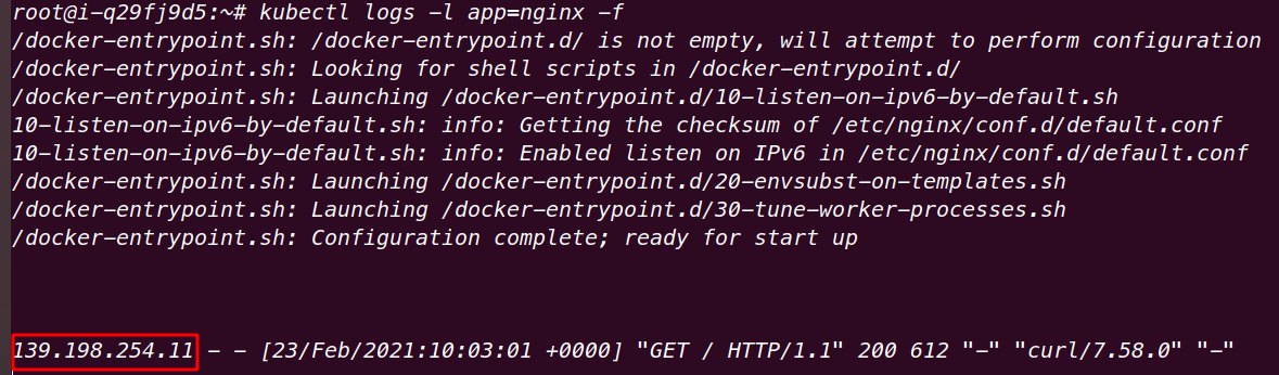 为了验证 Calico 切换到 eBPF 数据平面以后,后端确实可以拿到客户端的真实 IP ,下面我们会在集群中部署一个 Nginx 服务,并通过 nodeport 方式暴露接口。