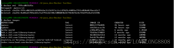 我们发现是无法删除的,也就是这个版本被运行了,是否真的是优先运行latest版本呢?其实这里docker做了一些出来,当运行镜像的时候如果不加版本,则默认运行就是latest