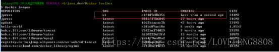 看到我们的容器已经运行起来了,而且一个是默认的latest版本 一个是保存的副本v1版本