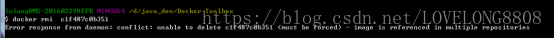 仔细观察,发现c1f487c0b351这个镜像删除时可以用repository和tag的方式来删除id指向了两个repository,因此无法删除