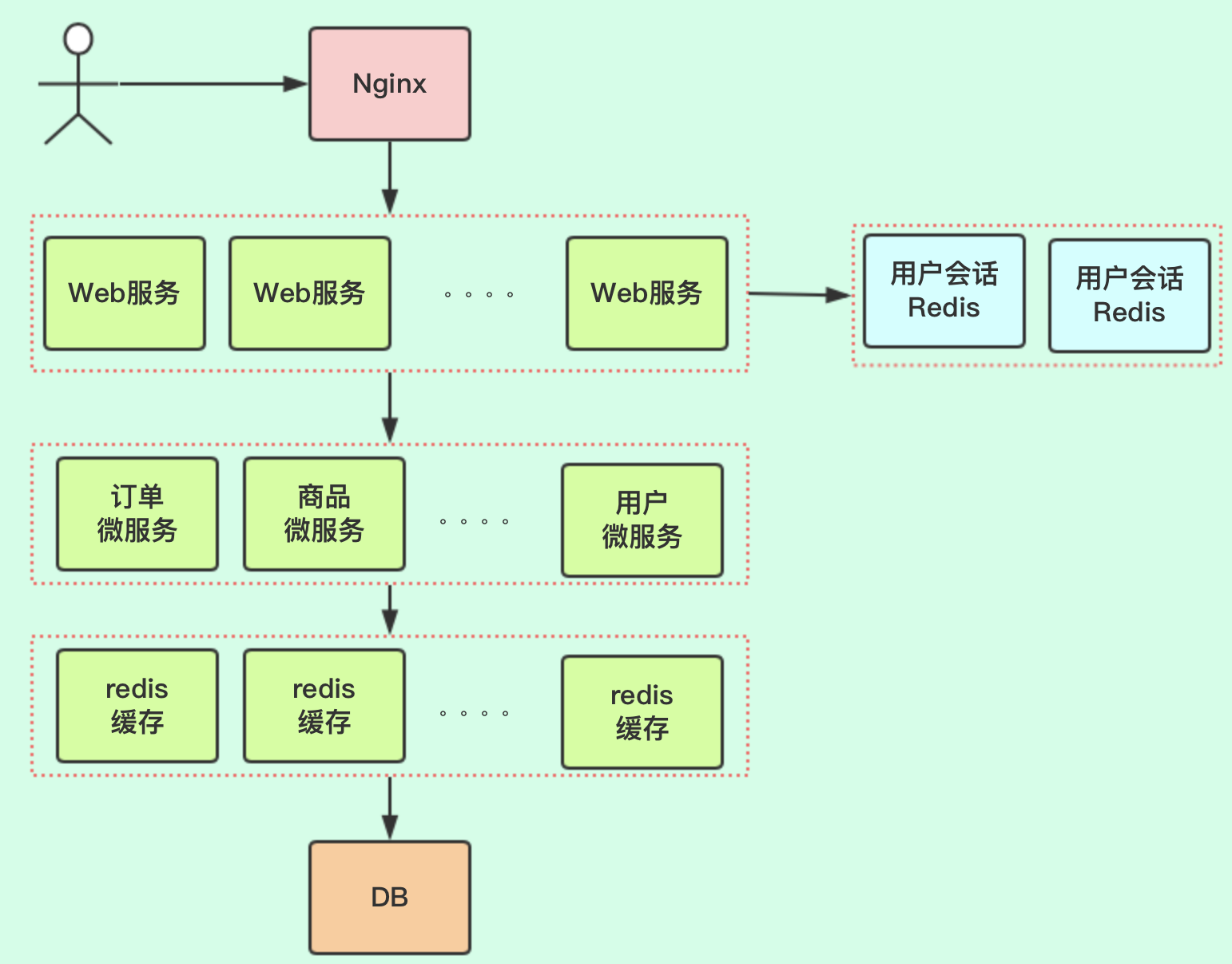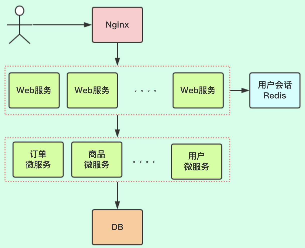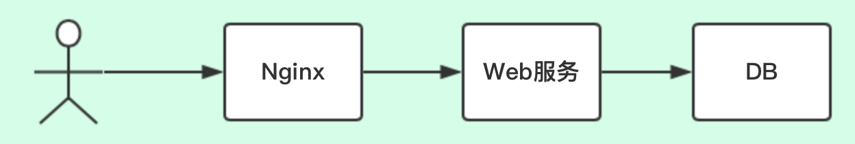 创业初期很多资源的限制,一切以业务为核心,能够正常使用就可以了,因为流量不是很大,所以这个阶段的什么集群、高可用、负载均衡就没有了