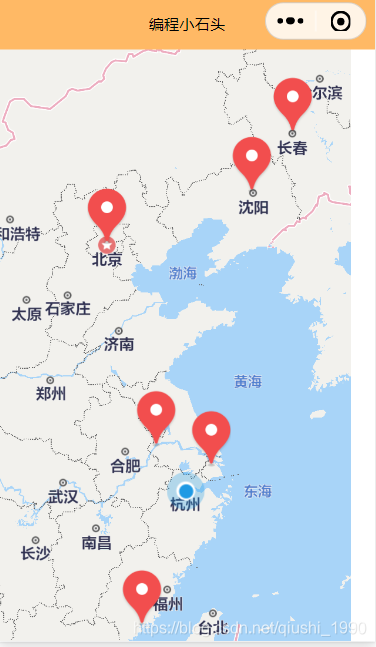 可以看到我们在地图上显示了附近的一些标记点。