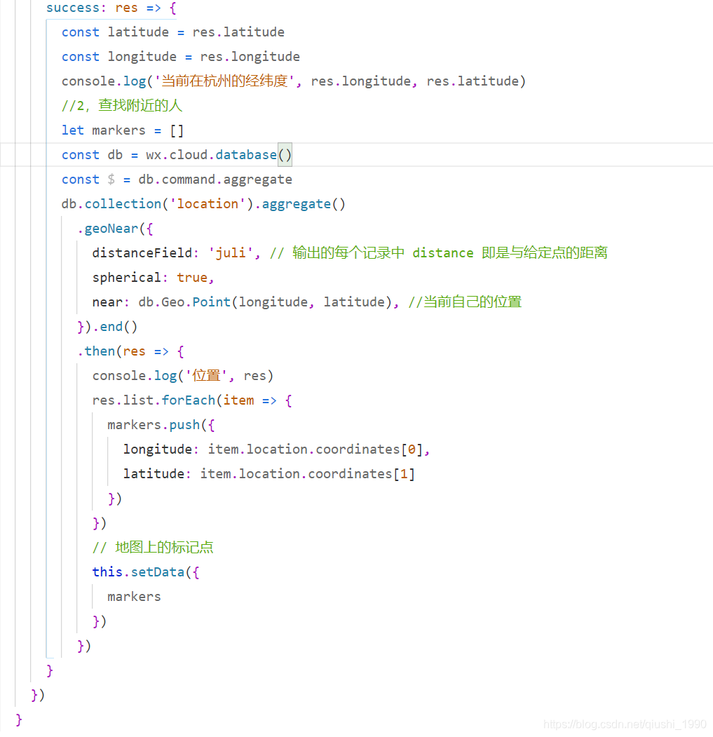 near: db.Geo.Point(longitude, latitude), //当前自己的位置