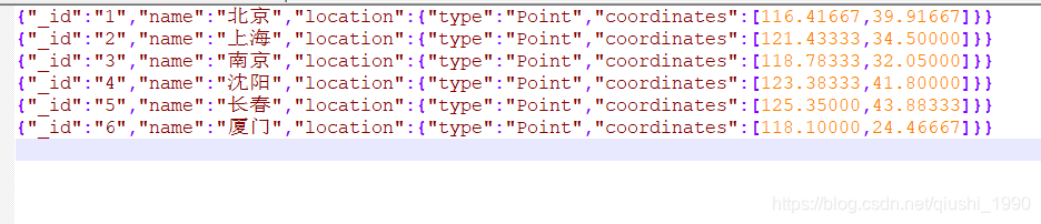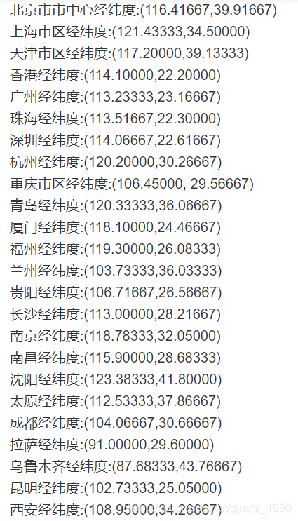 首先我们查询附近的人的时候,需要先有附近人的位置,也就是经纬度。这里我以几个城市的经纬度为例。