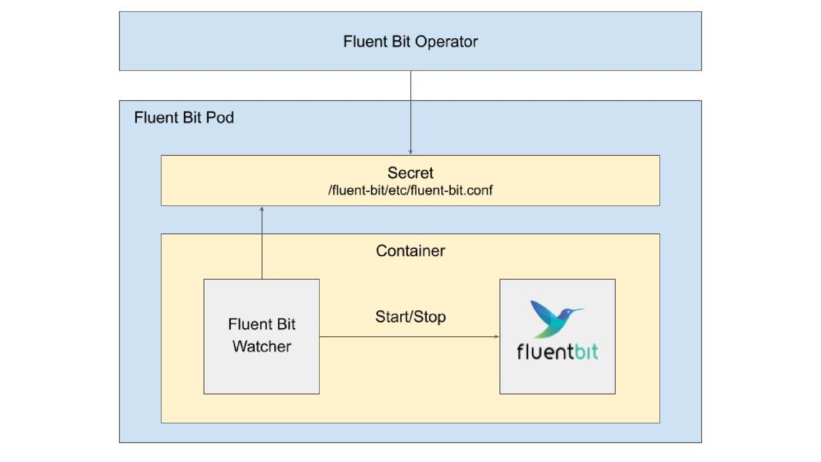 Fluent Bit Pod 中不是直接运行的 Fluent Bit,而是运行了一个名为 fluent-bit-watcher 的进程,fluent-bit-watcher 在启动后会启动 Fluent Bit,同时监听配置文件。当配置文件发生变化时,fluent-bit-watcher 会重启 Fluent Bit 以重新加载配置文件。