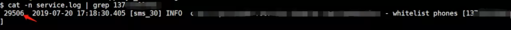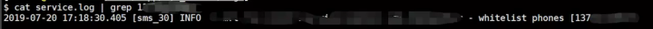 面对比较大的日志文件,这我们就得配合grep来玩了,比如我们现在得知某个手机号收不到短信验证码,想要看一下这个手机号的日志是怎么样的。于是我们就可以这样搞: