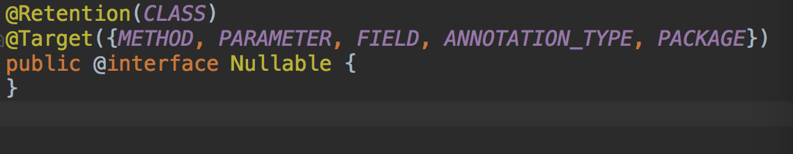 如上图X1所示,@Nullable可用于注解方法,参数,类成员,注解,包声明中,常用例子如下所示: