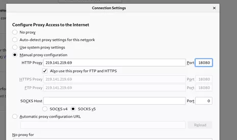 1.浏览器或操作系统配置 HTTP/HTTPS 代理:219.141.219.69:18080