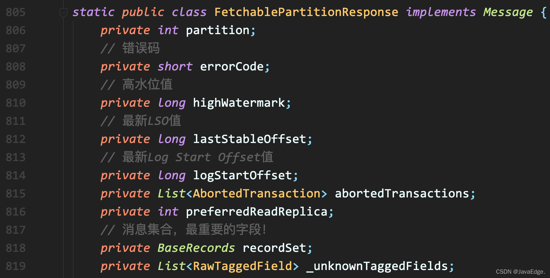 类似快捷方式:凡源码用到FetchResponse.PartitionData[Records],都可使用FetchData替换,EpochData同理。