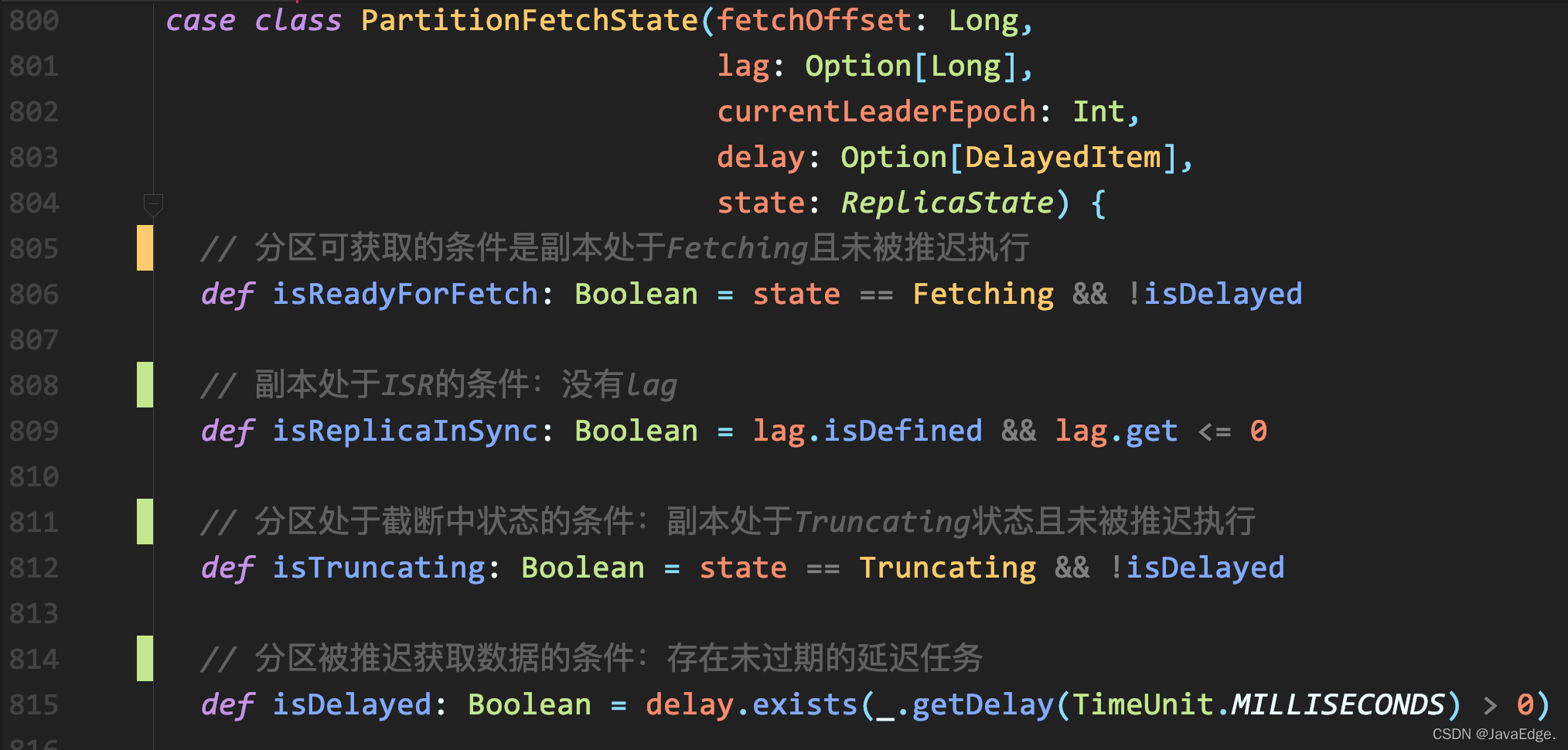 - 泛型参数类型PartitionFetchState类,表征分区读取状态,保存分区的已读取位移值和对应副本状态。