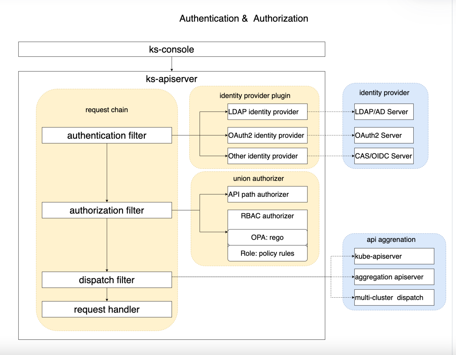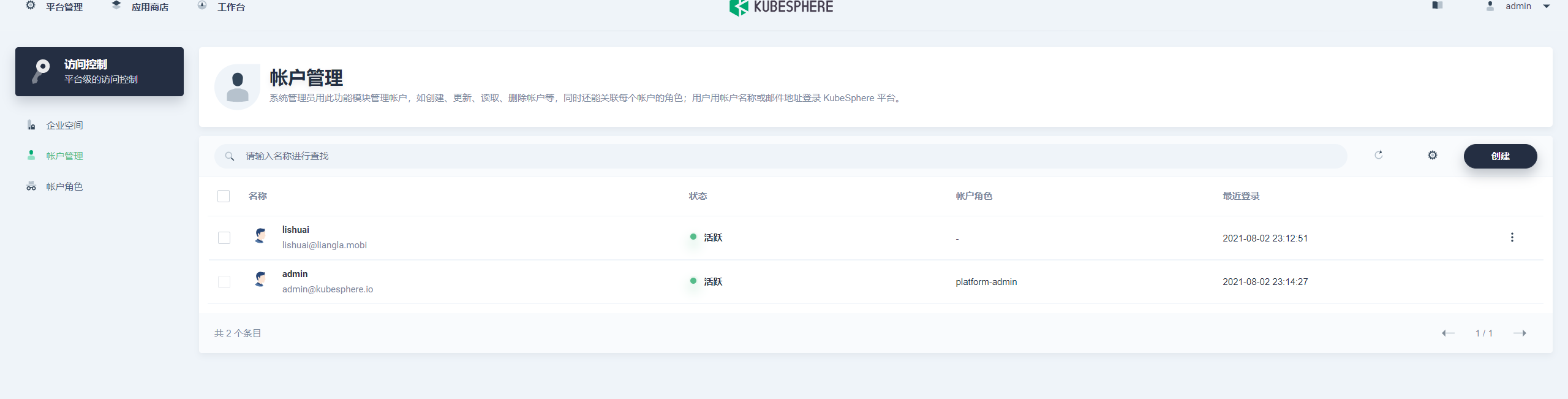 KubeSphere 多租户是实际生产使用中非常需要的一个功能,该功能满足不同用户登陆 KubeSphere 平台的需求。比如开发,运维,测试都需要登陆 KubeSphere 平台,并且需要为不同身份的用户配置不同的权限。当公司内需要访问 KubeSphere 的用户比较多时,管理员再去手动为用户创建账号就不太灵活了。KubeSphere 包含一个内置的 OAuth 服务和帐户系统,用户通过获取 OAuth 访问令牌以对 API 进行身份验证,我们可以通过接入 LDAP 或者 OIDC 来提供身份认证信息。