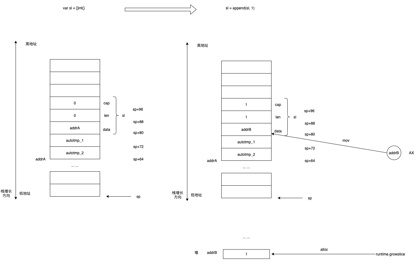 我这里同样用一幅示意图展示append后main函数栈的情况: