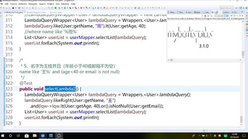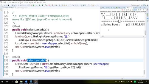 // 此处写法存在sql注入问题,不建议使用 userQuery.apply("date_format(create_time,'%Y-%m-%d')='2019-02-14' or true or true").inSql("manager_id","select id from user where name like '王%'");likeRight()、and()的Lambda表达式融合: