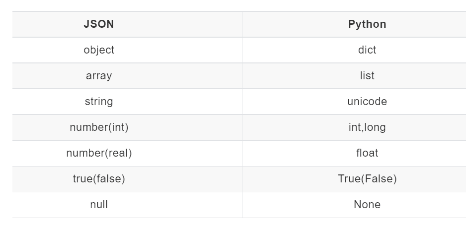 把Json格式字符串解码转换成Python对象 从json到python的类型转化对照如下: