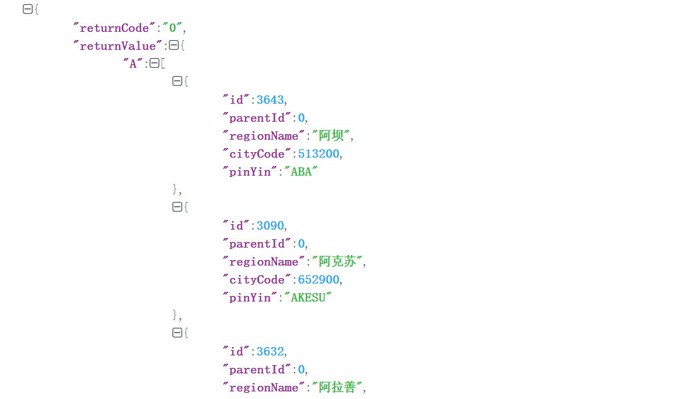 city_list = jsonpath.jsonpath(obj,'$..regionName') # 文件对象 jsonpath语法