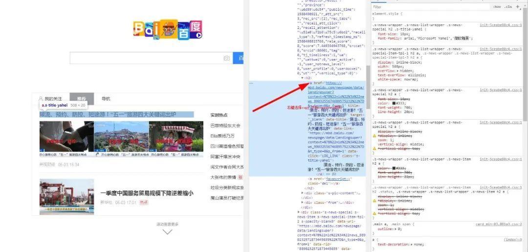 然后我们可以,比方说,你要获取a标签内的文本和它的属性href所对应的值,有两种方法,