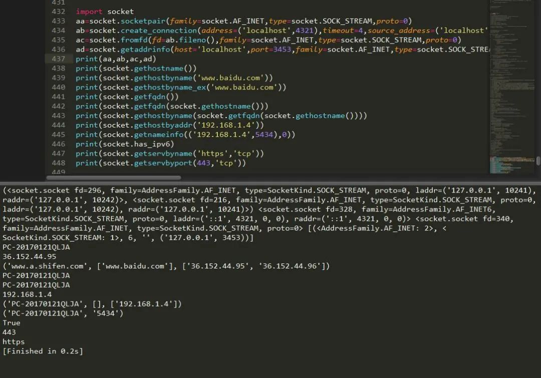 socket.getservbyname('https','tcp') #第一个参数为服务协议:Https,Http;第二个为传输协议:Tcp Udp