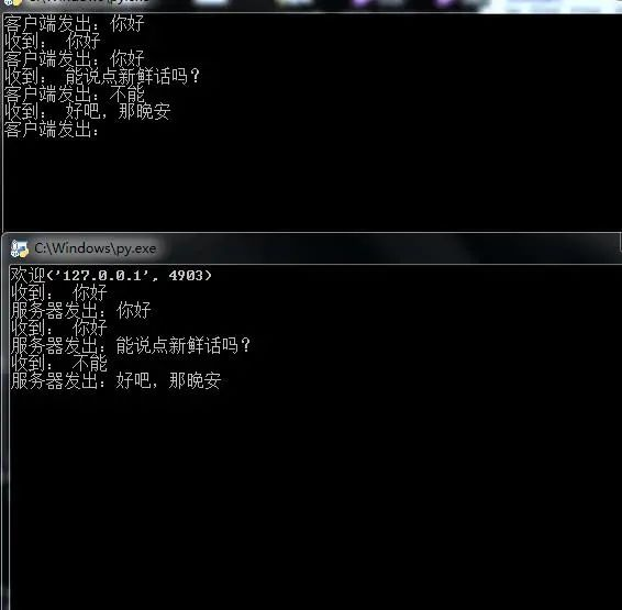 print('欢迎{}'.format(addr)) #打印访问的用户信息
