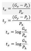 这边我重点解释一下为什么设计的为什么除以宽高,为什么会有log形式!!!