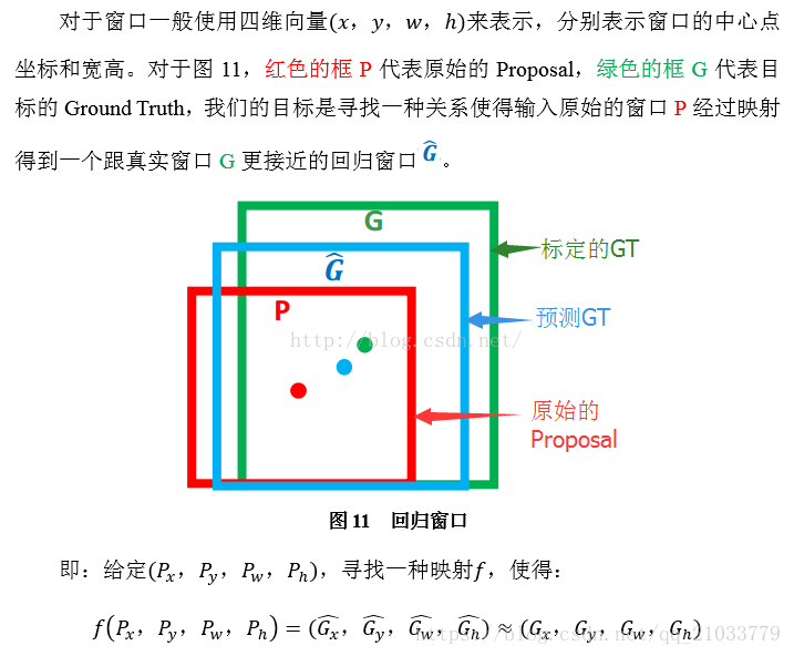 利用梯度下降法或者最小二乘法就可以得到 。所以根据这个loss学到是输入是pool5的feature map 输出是近似于真实的t∗=(tx,ty,tw,th)的值,所对应的w。所以应用时需要在转到(Gx^,Gy^,Gw^,Gh^)