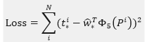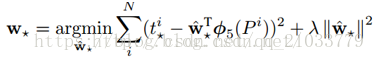 那么目标函数可以表示为 , 是输入 Proposal 的特征向量,是要学习的参数(*表示 x,y,w,h, 也就是每一个变换对应一个目标函数) , 是得到的预测值。 我们要让预测值跟真实值差距最小, 得到损失函数为: