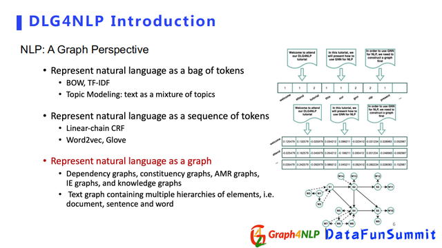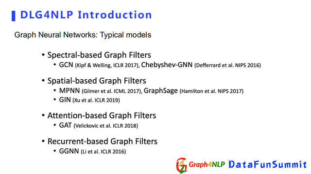导读: 本次分享的内容为图深度学习在自然语言处理领域的方法与应用,主要内容和素材都来自于我们Graph4NLP团队的一篇调研文章:Graph Neural Networks for Natural Language Processing:A Survery,以及我们团队所开发的Graph4NLP的python开源库和教程。主要包括以下几大方面内容:
