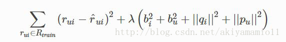 其中μ为评分的平均值,分别表示u用户的偏置量和i物品的偏置量。