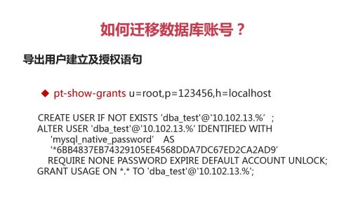 如果使用的是 Percona Server 版本的MySQL可以使用下面这个命令到处用户创建和权限设置语句: