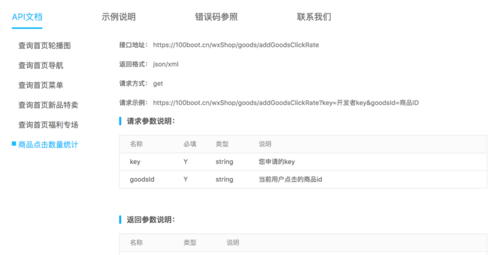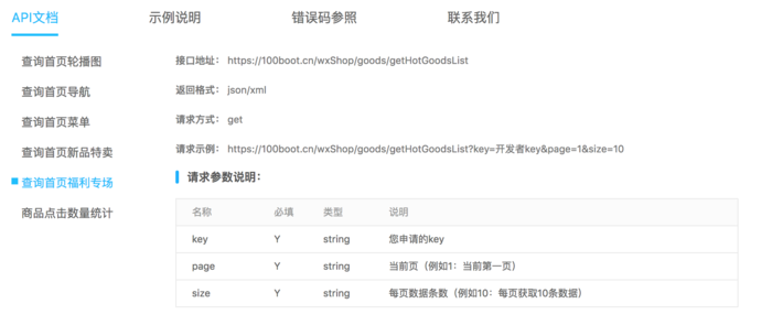 福利专场API详情可以通过访问 https://100boot.cn 选择案例查看。