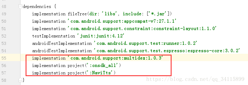 implementation 'com.android.support:multidex:1.0.3'implementation project(':onsdk_all')