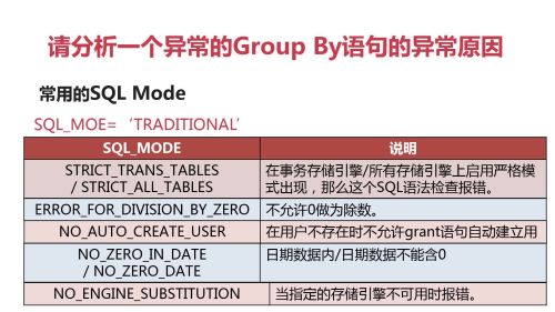 sql_mode=‘STRICT_TRANS_TABLES,STRICT_ALL_TABLES,ERROR_FOR_DIVISION_BY_ZERO,NO_AUTO_CREATE_USER,NO_ZERO_DATE,NO_ZERO_IN_DATE,NO_ENGINE_SUBSTITUTION’。