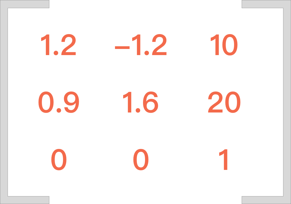 matrix(1.2, 0.9, -1.2 1.6, 10, 20)
