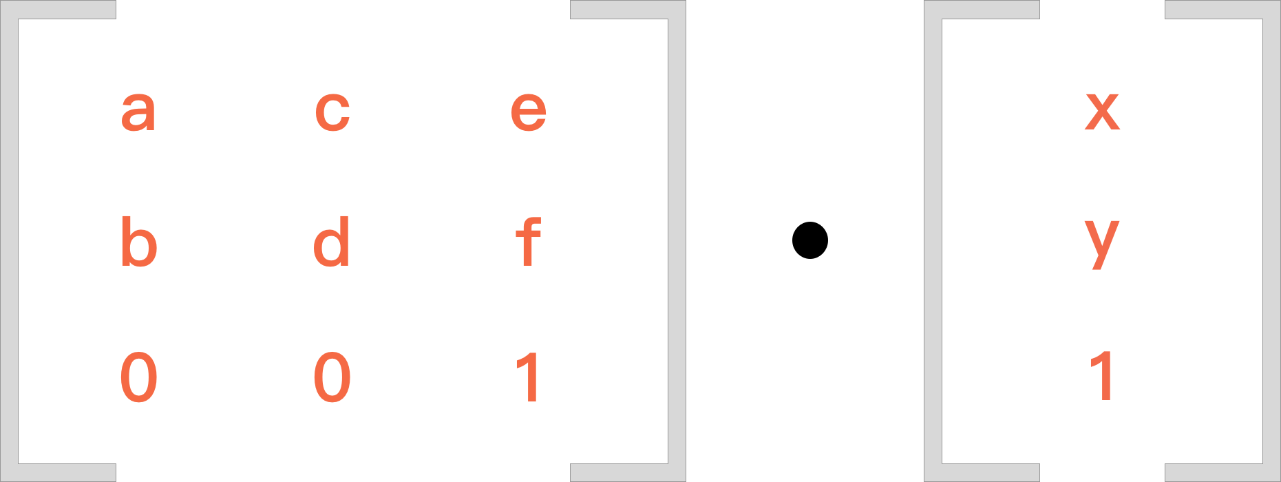 这里我用小写字母代表第一个矩阵中的值,大写字母代表第二个矩阵里的值