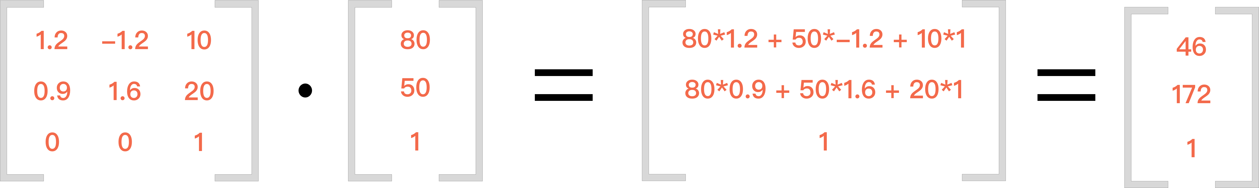 我们用之前得出的变换矩阵去乘以这一个坐标组成的3*1(三排一列)矩阵。